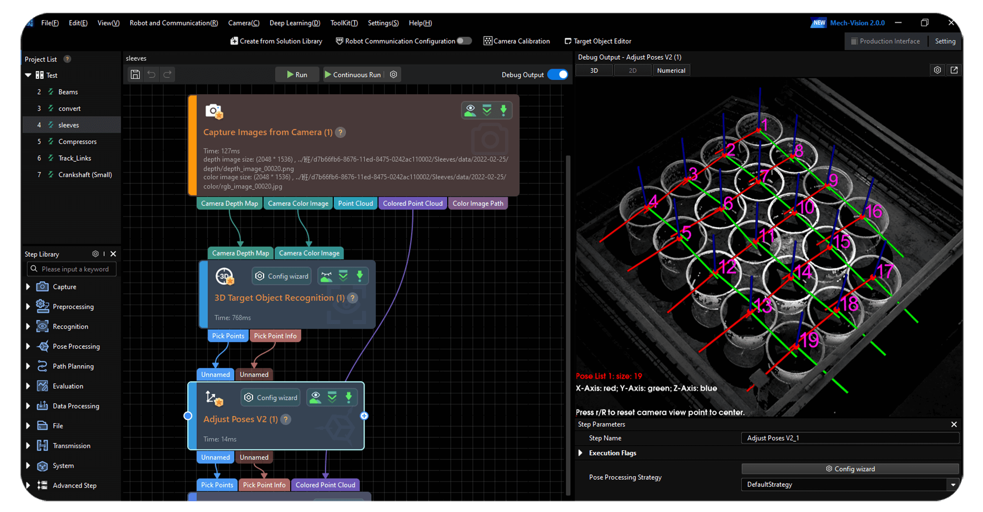 Machine vision software Mech-Vision simplifies all codes into steps, and users can edit algorithms without writing any codes.