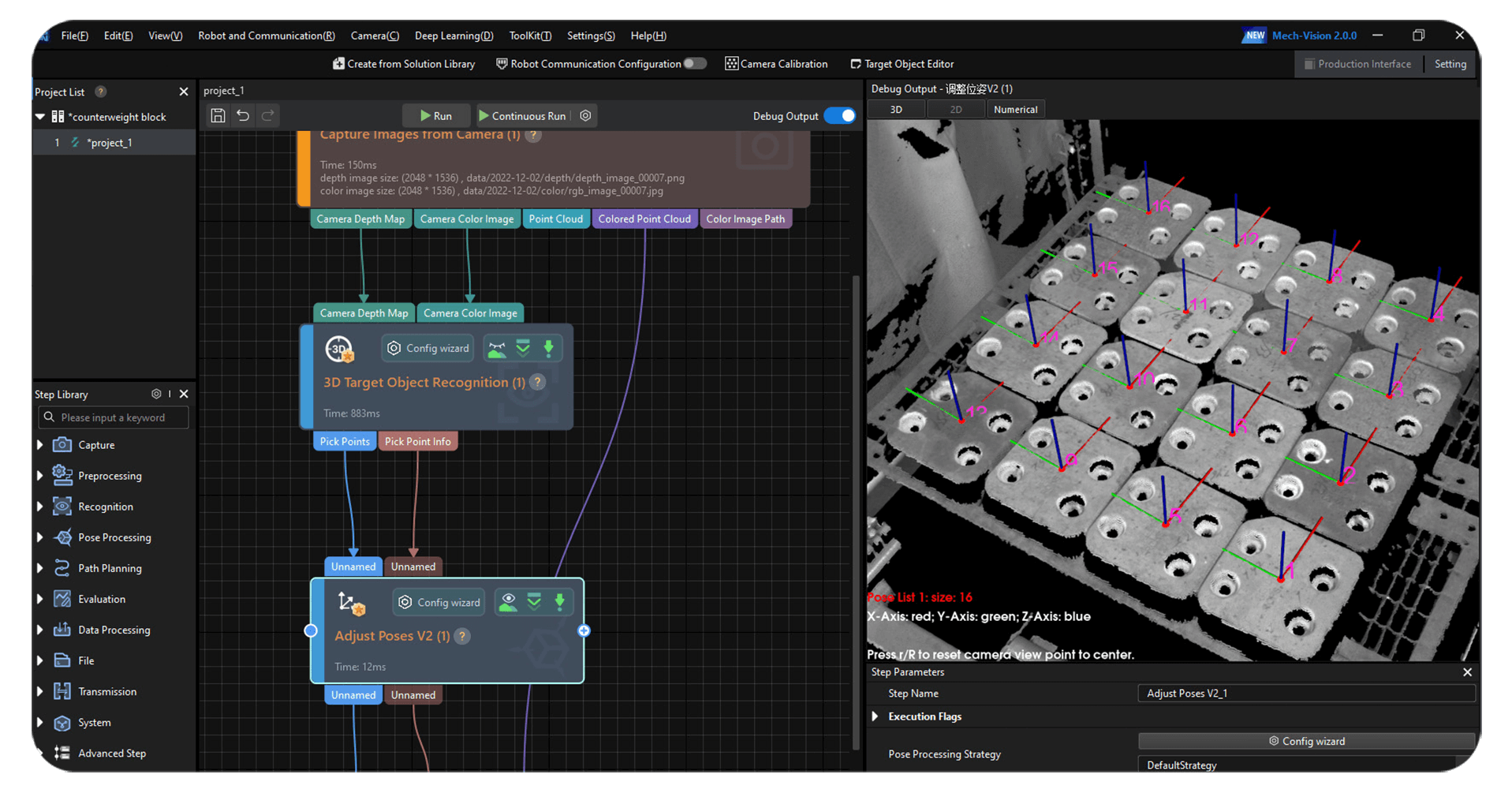 Mech-Vision simplifies all codes into steps, users can edit algorithms without writing any codes.