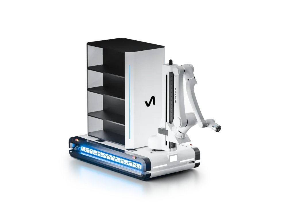 MAV runs quietly and uses LED lights to show its status. Its movements are force-limited, making it safe to operate in shared spaces.