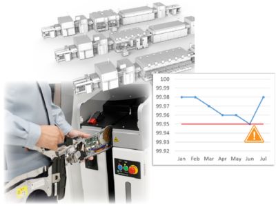 By communicating not only with Fuji’s printers and placement machines, but also with inspection machines and reflow machines from other suppliers, Nexim can manage integrated information for the entire lines. This allows you to analyze information from inspection machines and placement machines to inform when to perform predictive maintenance.