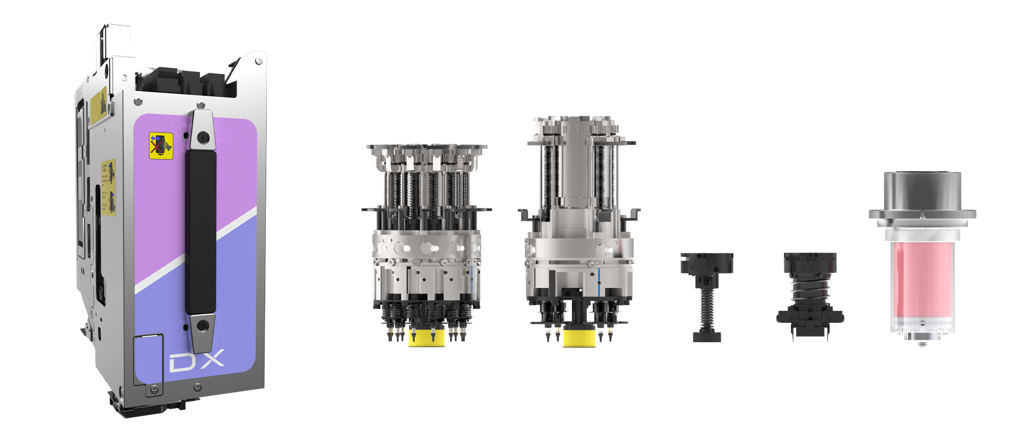 Fuji’s placement heads condense advanced, high-speed mechanisms and sensing technology into a compact, lightweight body. Through this, Fuji has achieved industry-leading speed and high accuracy placement. The heads can also accommodate a wide range of part sizes and heights, as well as various functions for different production types, to meet diverse manufacturing needs. In addition, the compact and lightweight heads can be easily attached and removed without tools, and can be automatically maintained offline. The maintenance burden is also greatly reduced. FUJI placement heads provide high productivity and high quality placements at SMT sites with their speed, accuracy, durability, and ease of use.