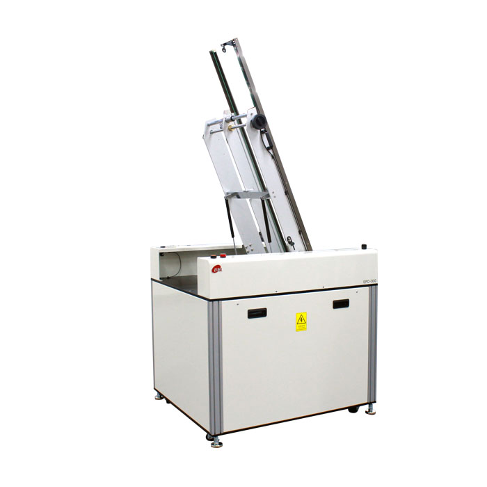 Design to provide a normally close walkway through a production line. PCB is transferred to down line as like normal conveyor. By pressing Interlock Reset Button, operator can lift up the conveyor manually. To maintain a clear walkway (500mm), conveyor is fixed by gas spring.
