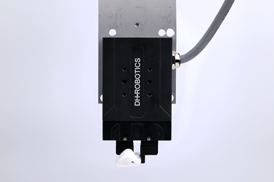 The gripping force of the pneumatic gripper is unstable, which is easy to cause damage to the surface of the earphone. Therefore, our electric gripper with accurate force control is selected for earphone clamping.