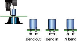 A leaded part is inserted and the leads are cut and clinched from the panel bottom. This prevents the inserted part from falling over or coming out. The bending directions of leads are bend in, bend out, and N bend.