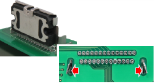 As well as leaded parts, connectors can be lightly fastened by bending metal plates that protrude from the panel bottom (*).