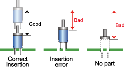 In addition, a conductivity check is performed during cut and clinch operation to check whether the part has been inserted correctly.