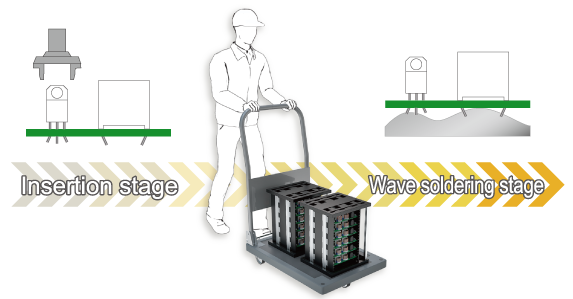 Can convey the general 16-inch reflow pallets as they are. Easy to directly connect to the wave soldering unit.