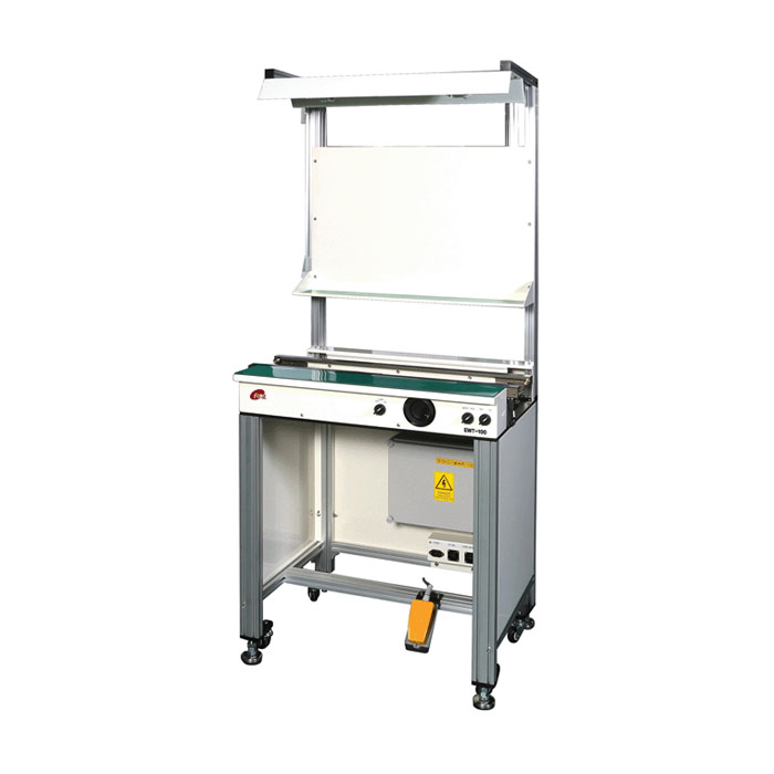Design to work/inspect and transfer PCBs to next process. Under inspect mode, PCB stop at middle of conveyor. After operator work/inspect PCBs, press foot pedal or pass button. Then, PCB move to end of conveyor and ready to transfer to next process.